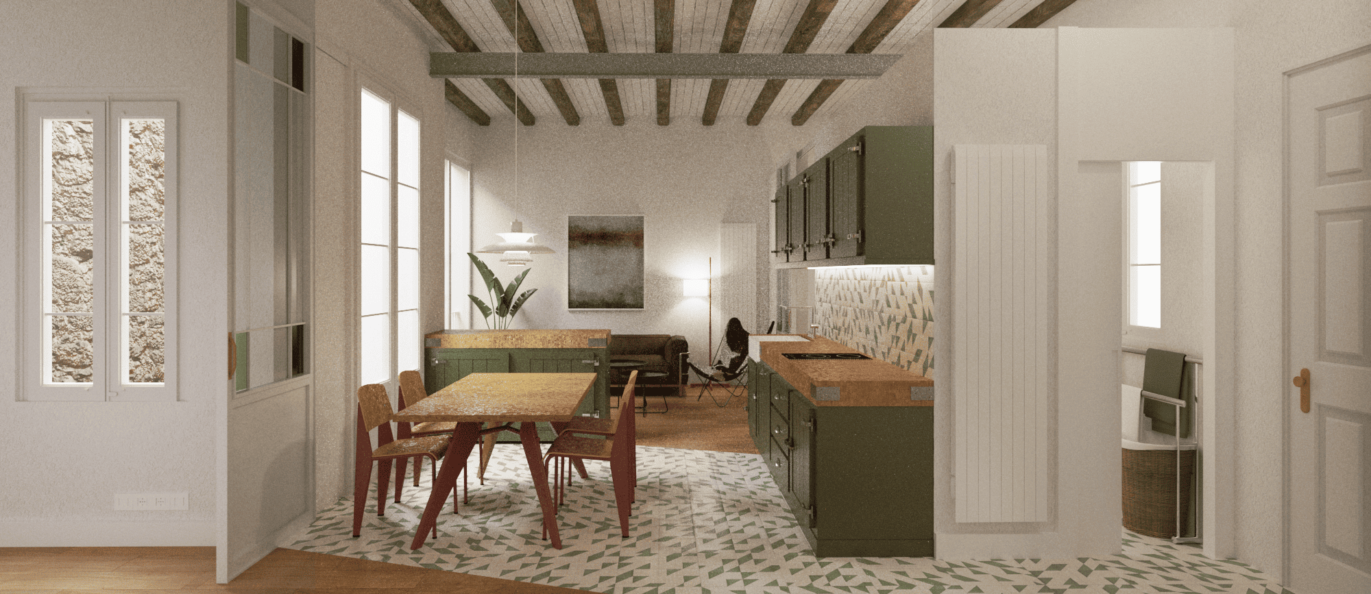 El piso consta de 3 habitaciones y 2 baños y patio privado